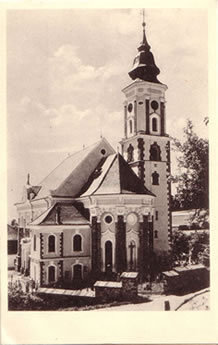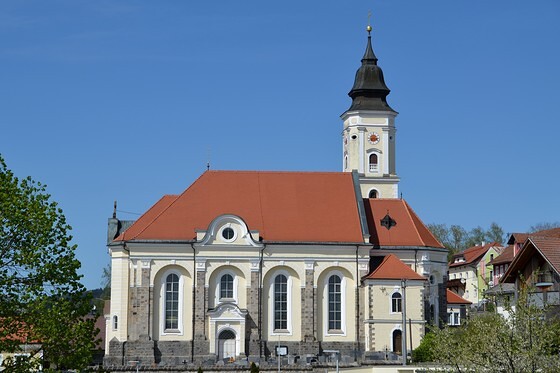 Betritt man die Pfarrkirche (Dombaumeister Matthäus Schlager, Weihe 1905) durch den gegenüber dem Pfarrhof gelegenen Eingang, leiten die Deckengemälde des Mittelganges durch das hohe Langschiff Richtung Hochaltar.