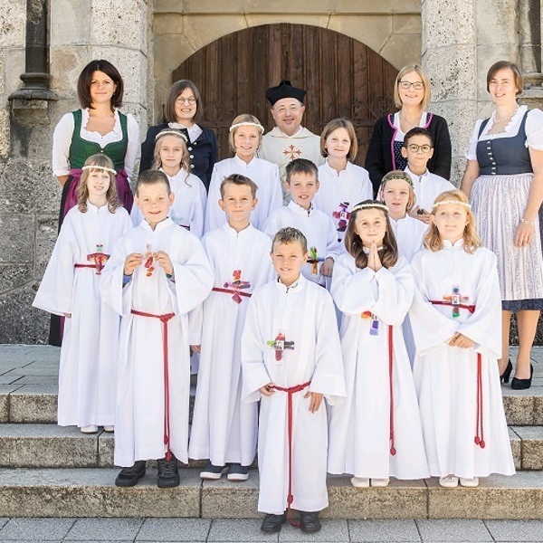 23 Kinder feierten am 4. Oktober - ein wunderschöner Herbsttag - aufgeteilt auf 2 Gruppen in der Pfarrkirche Nußbach den Tag der  "Erstkommunion"