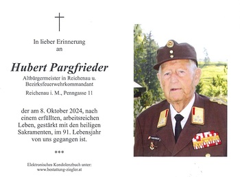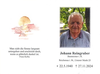 Der Trauergottesdienst mit anschließender Beisetzung der Urne im Familiengrab findet am Donnerstag, 15. Feb um 10:00 Uhr in Reichenau statt. Im gemeinsamen Gebet gedenken wir seiner am Dienstag, 13. Feb um 19.30 Uhr in der Pfarrkirche.