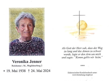 Wir geleiten unsere liebe Verstorbene am Montag, den 27. Mai 2024 um 10:00 Uhr in Reichenau zur letzten Ruhe.