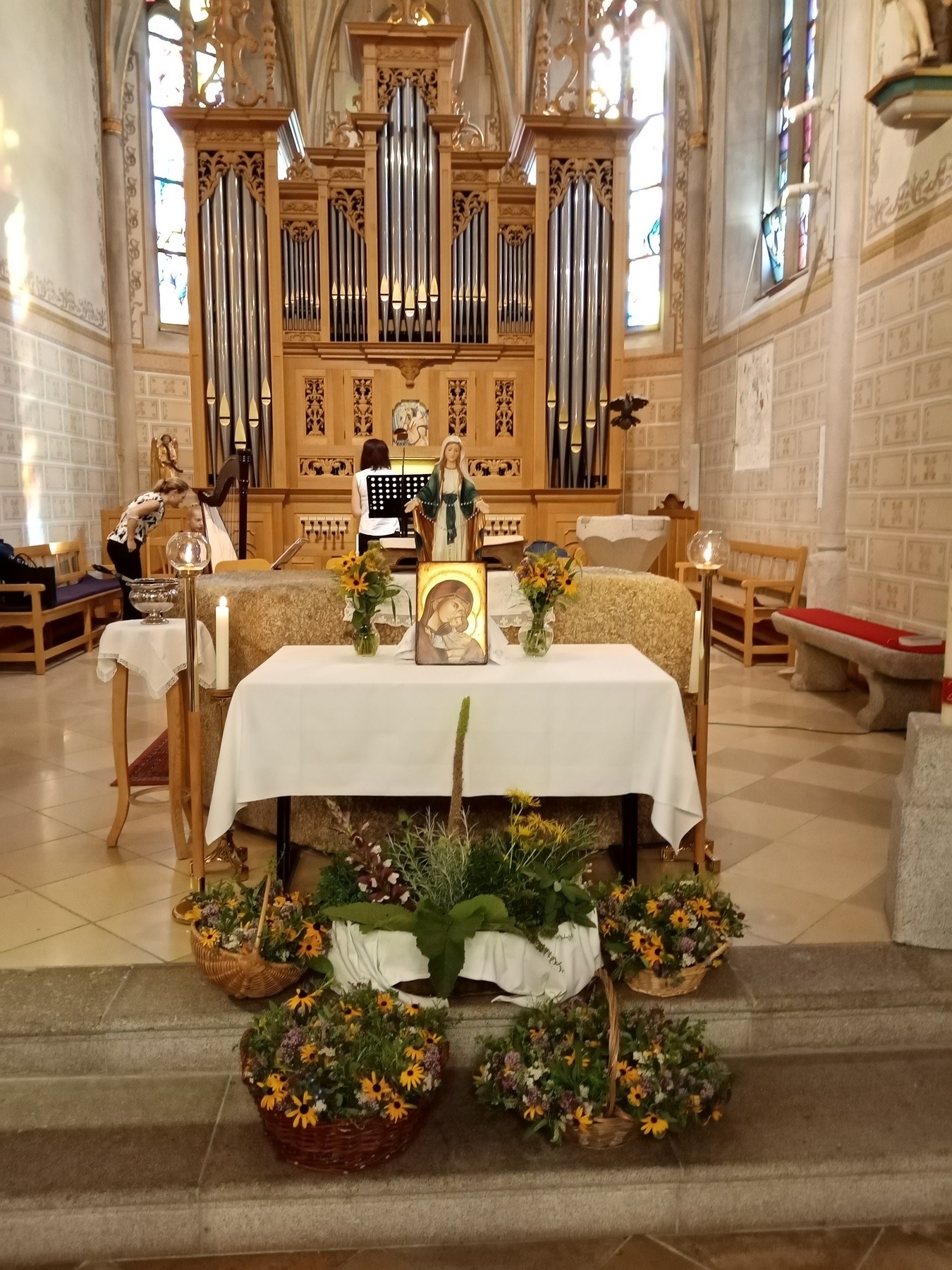 Sie gehört zu einem Jahrhunderte alten Brauch und ist eine langjährige Tradition der Goldhaubenfrauen in unserer Pfarre: Die Kräuterweihe am 15. August, also jenem Festtag, an dem die Aufnahme Mariens in den Himmel gefeiert wird.