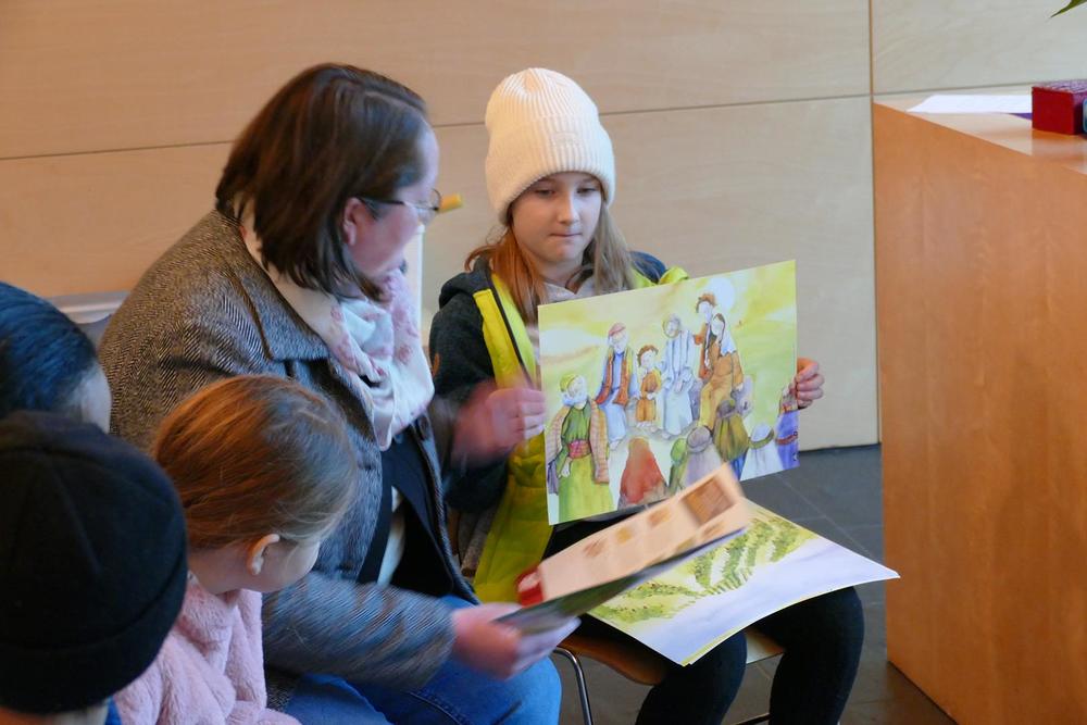 Rita öffnete auch das erste Fenster unseres Adventkalenders und zum Vorschein kam ein Bild mit zwei Menschen und unserer Erde. Passend zum Thema "Brücke zur Gerechtigkeit" gab es dann auch einen meditativen Text um uns in das Thema hineinversetzen zu können.
