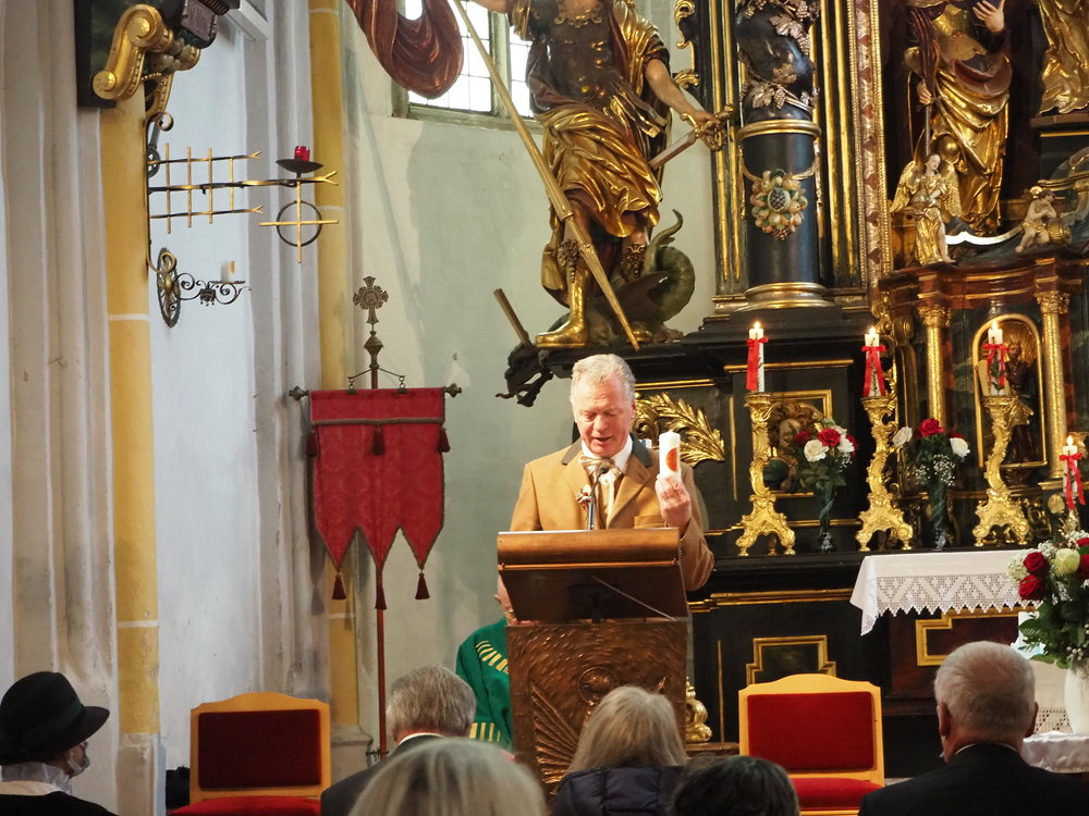 Die Goldhaubenfrauen bereiteten besondere Brautleute-Büscherl, die den Jubiläumspaaren angesteckt wurden. Weiters wurde ihnen eine gesegnete Kerze zur Erinnerung an ihr Jubiläum überreicht. So feierten sie in einer wunderschön geschmückten Kirche einen Erinnerungsgottesdienst an ihre Hochzeit.
