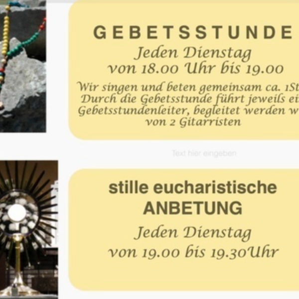 stille Eucharistische Anbetung: jeden Dienstag von 19:00 - 19:30 Uhr